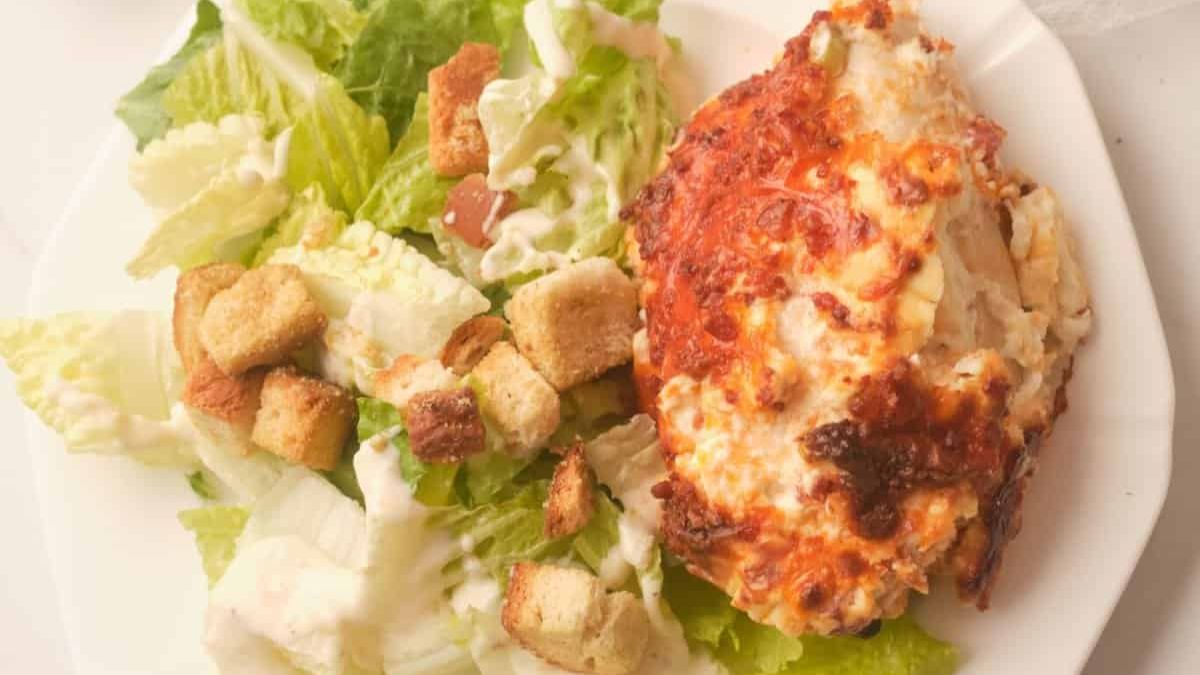 This chicken bakes up juicy with a kick of Caesar flavor that feels anything but plain. The salad dressing brings just the right tang, and the extra cheese on top ties it all together. I tossed it on the plate with some greens, and the combo worked like a charm.