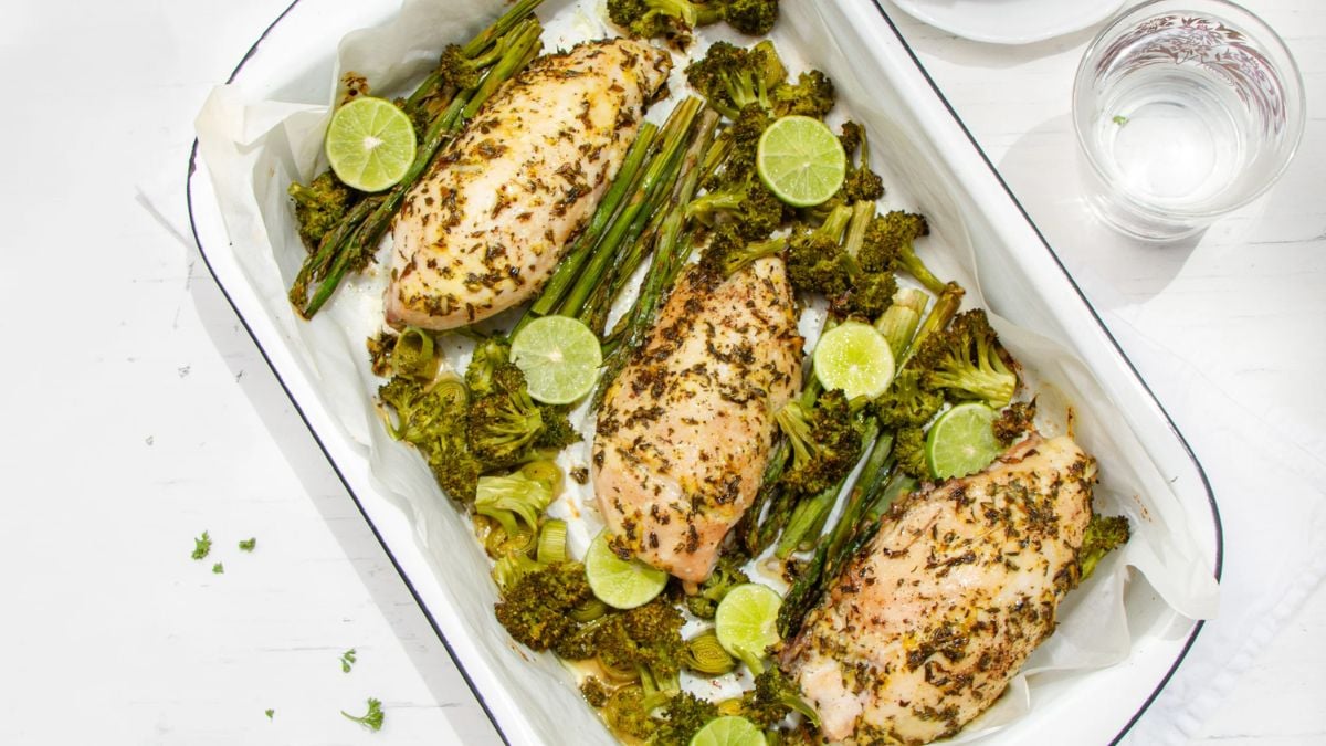 The mustard and lime marinade gives the chicken a sharp, herby flavor that pairs perfectly with fresh veggies. Baking it all together keeps things simple without losing out on texture. It’s the kind of meal that feels fresh but still filling.