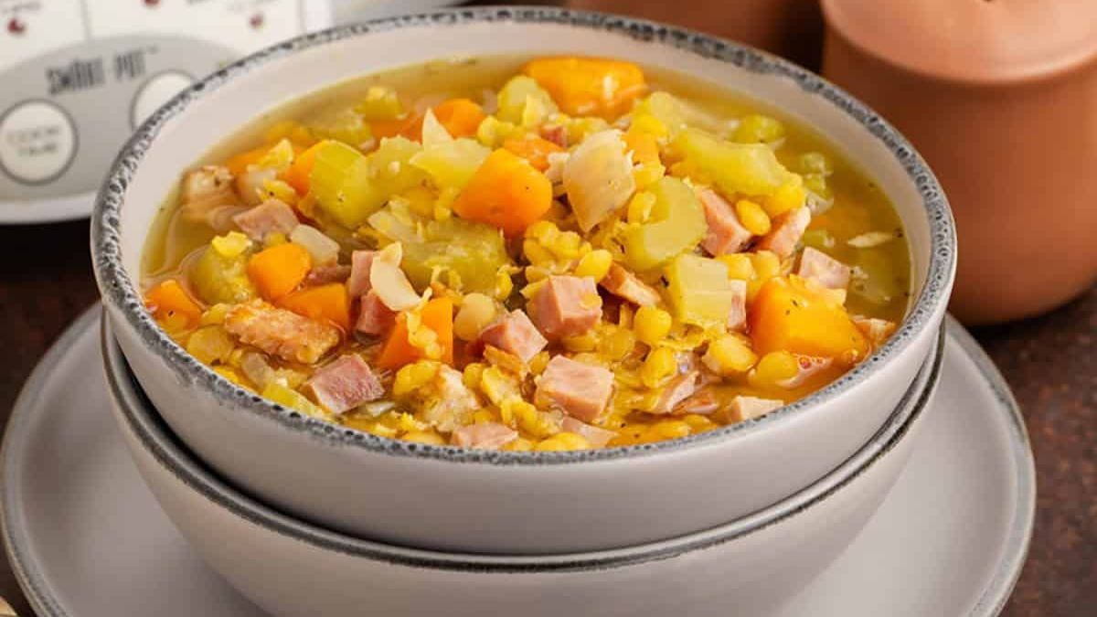 This split pea soup gets its depth from smoky bacon and chunks of ham that cook down with the peas. The result is a thick, rich base that pairs nicely with bread or even crackers. It reheats well too, so you can keep enjoying it without losing flavor.