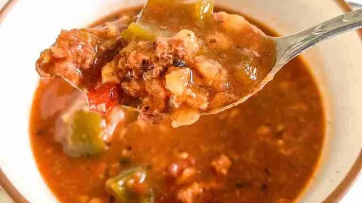 Ground beef, peppers, and fire-roasted tomatoes simmer together until the flavors meld into a rich, hearty soup. It’s filling without feeling too heavy, and leftovers taste even better the next day. Since it cooks low and slow, dinner is ready as soon as you are. Pair it with bread or salad for an easy full meal.
