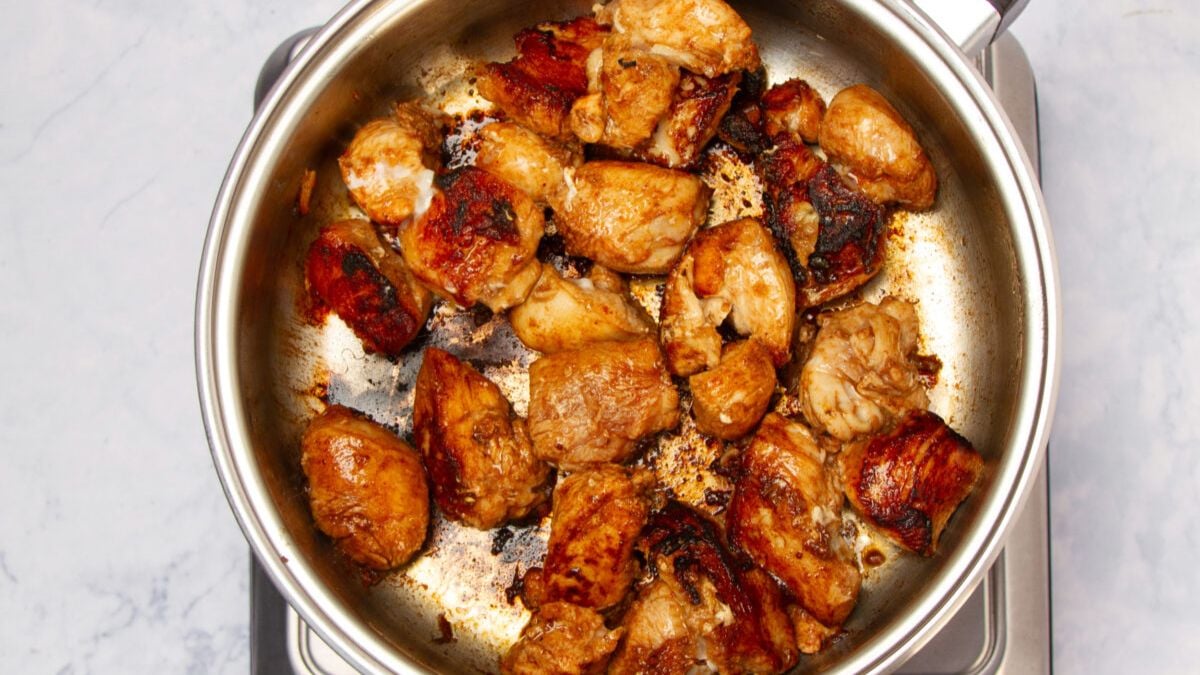 Heat oil in a nonstick skillet over medium-high heat. Add the marinated chicken and sauté for 6–8 minutes until fully cooked and lightly golden. Turn off the heat but keep the chicken in the skillet.