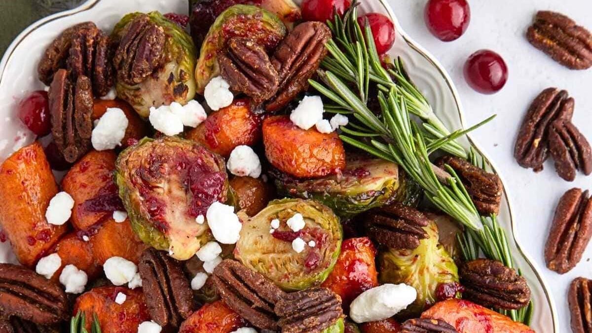 Brussels sprouts roast until tender, then get tossed with carrots and cranberries for balance. The mix stays slightly crisp while still feeling hearty. Pecans and goat cheese add contrast without overwhelming the vegetables. It’s an easy way to bring color to the table.