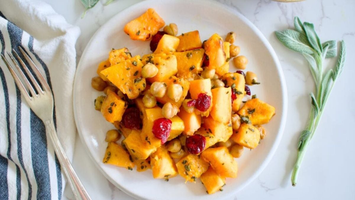 This butternut squash roasts until tender while cranberries and chickpeas add contrast. Since everything cooks on one pan, prep stays low-effort. The sage adds depth without overpowering the vegetables. It earns its place among healthy vegetable side dishes for both weeknights and holidays.