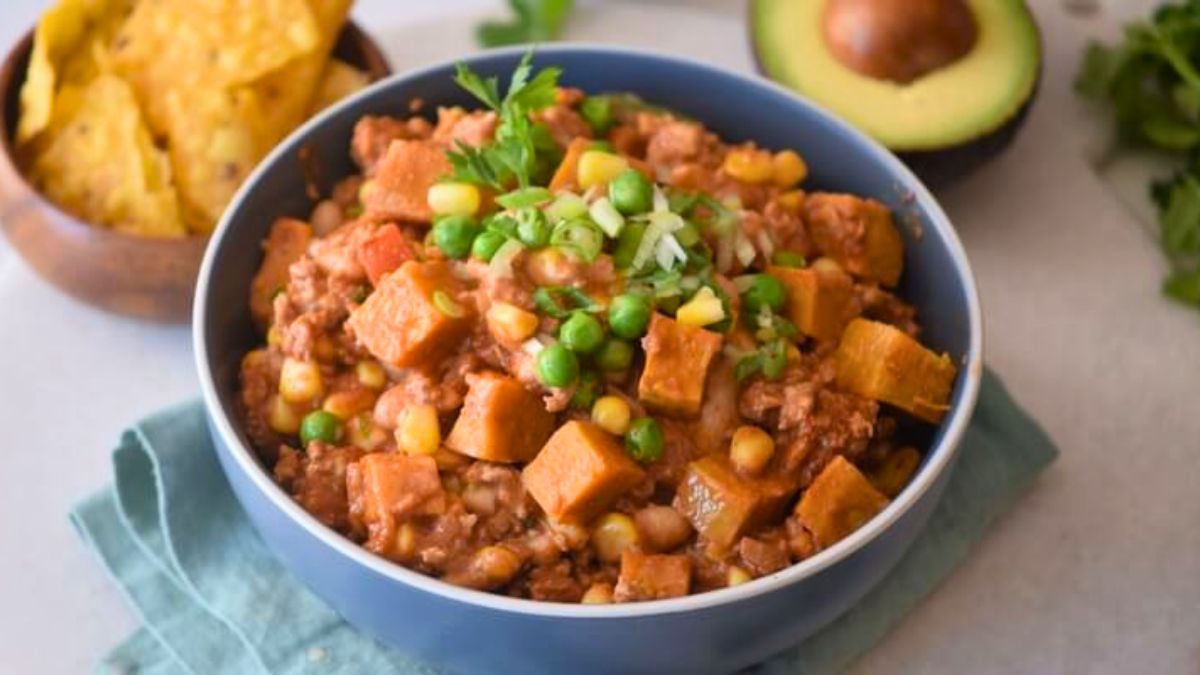 This sweet potato and turkey chili balances hearty ingredients with a lighter feel. The turkey stays juicy, while the sweet potatoes soften just enough without turning mushy. Meanwhile, the seasoning brings warmth without overpowering the bowl.
