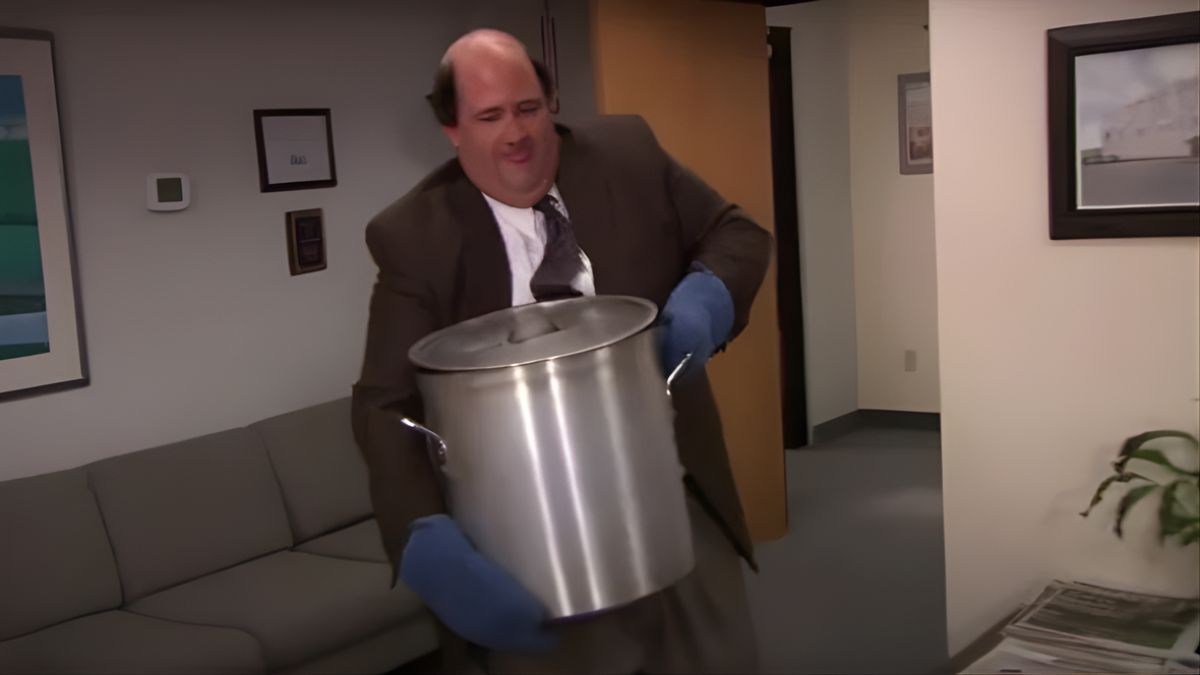 Nothing says classic The Office like Kevin’s chili disaster. Kevin spills a massive pot of his family’s famous recipe all over the office carpet. The slow-cooked beef, beans, and spices were “probably the thing he did best,” until gravity intervened. It’s messy, hilarious, and forever burned into our collective TV memory.