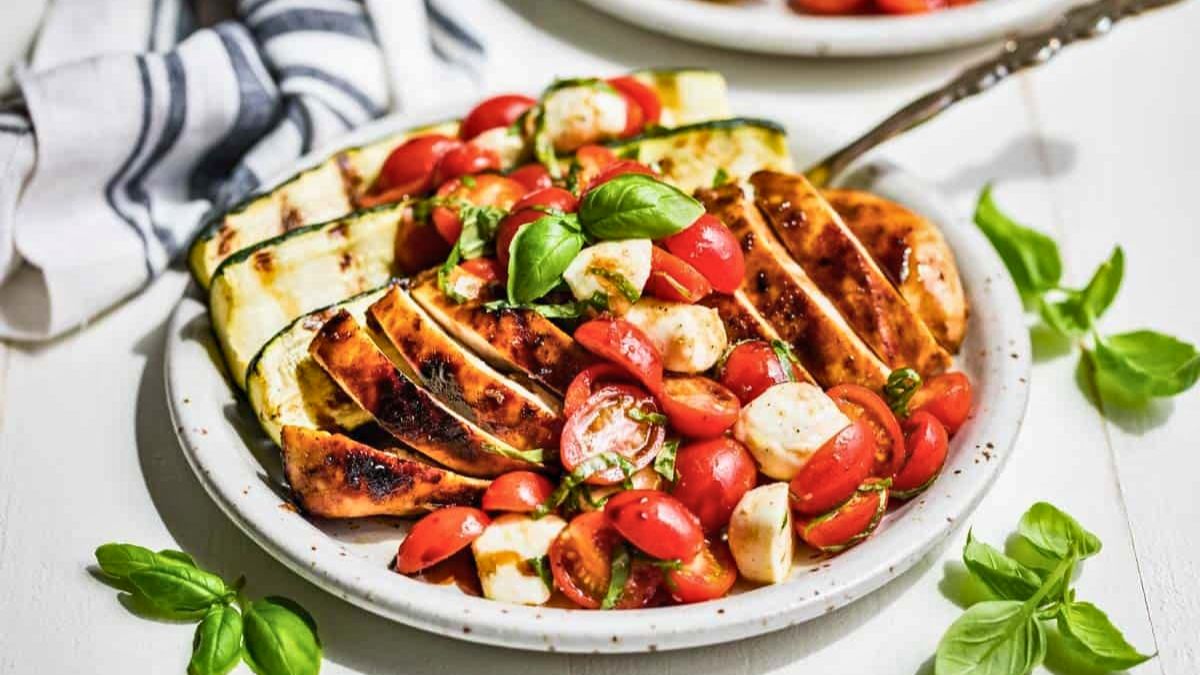 Grilled Chicken Caprese is fresh, flavorful, and easy to prepare. Juicy chicken is paired with melted mozzarella, ripe tomatoes, and grilled zucchini for a balanced, no-fuss dinner. This is a perfect recipe for Italian chicken dinners on busy nights or casual entertaining.