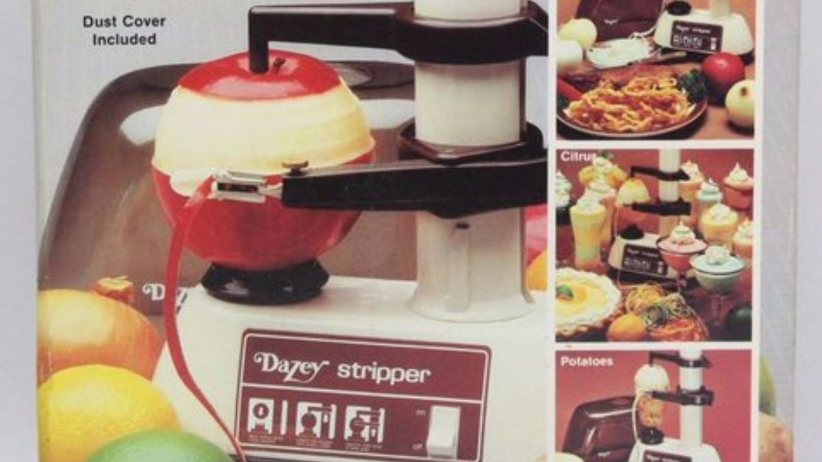 The Dazey Stripper promised fast, hands-free peeling of fruits and vegetables. It spun produce while removing peels in long strips. While clever, it wasn’t practical for daily cooking. Cleanup and storage outweighed convenience. Simple handheld peelers proved far more useful.