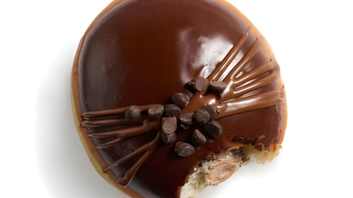 The Chocolate Truffle Doughnut skips the glaze entirely. Instead, it’s filled with chocolate truffle-flavored Kreme and dipped in chocolate icing. Chocolate drizzles and chocolate chips finish the look. The result is dense, rich, and unapologetically decadent. It’s the most dessert-like option in the lineup.