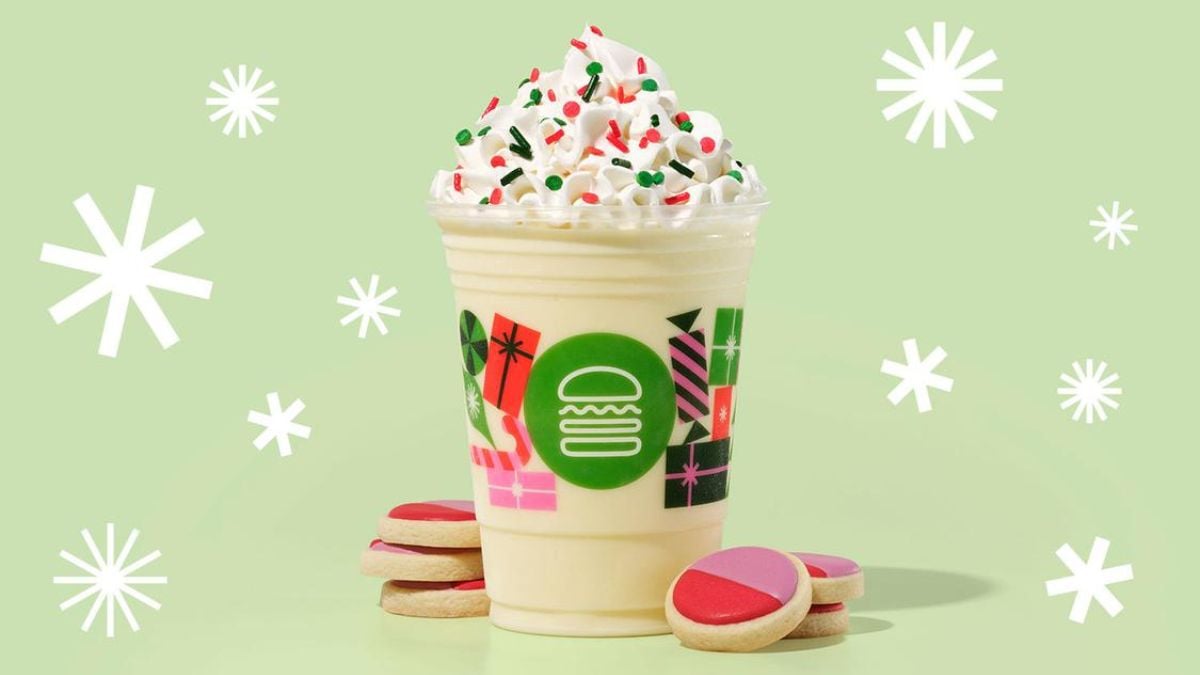 Shake Shack’s Christmas Cookie Shake uses sugar cookie frozen custard as its base. It’s a dessert drink that doubles as a seasonal celebration. The shake is sweet, nostalgic, and perfect for anyone who loves holiday treats in a cup.