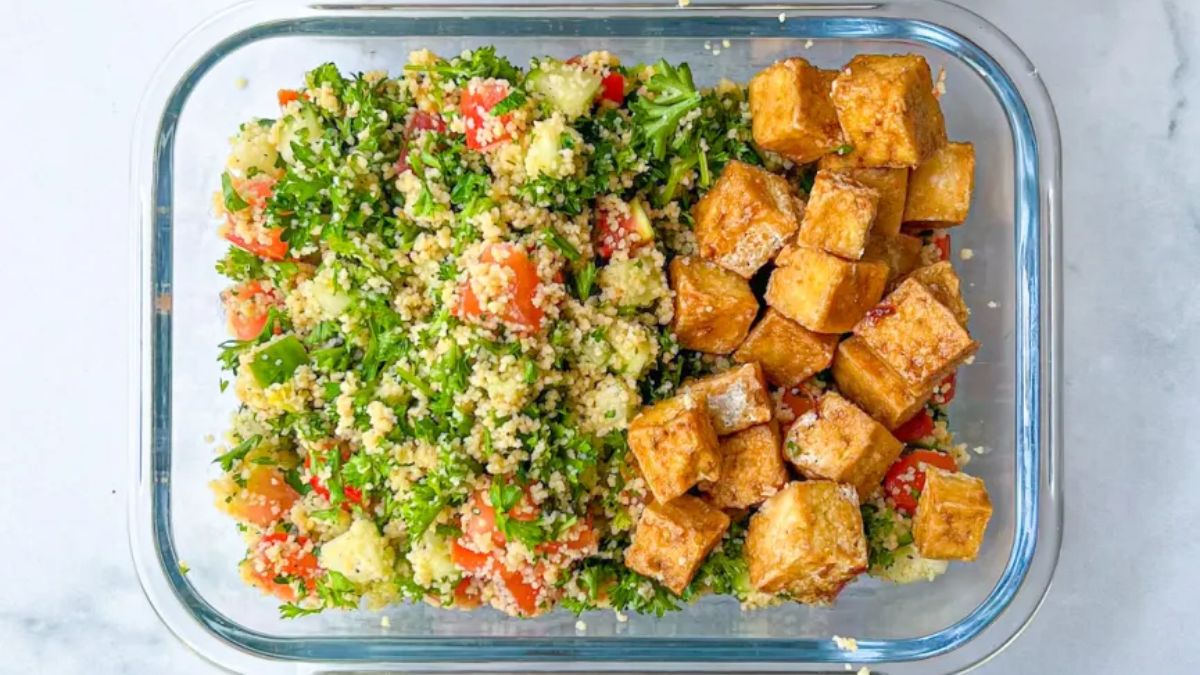Lemony couscous and balsamic tofu come together in under 20 minutes, which helps on busy prep days. The tofu holds its texture even after reheating, while the couscous stays light. This option fits well into meal prep recipes for weight loss thanks to its balanced protein. Store servings in airtight containers for best results.