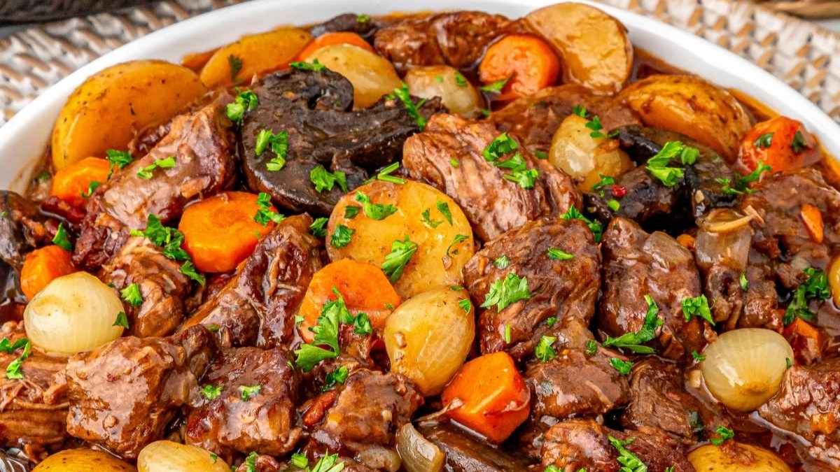 Crockpot Beef Bourguignon simmers slowly until the beef turns tender and flavorful. Vegetables soak up the sauce as it cooks. Since it stays warm in the slow cooker, serving is simple. It rounds out new year’s eve dinner ideas that benefit from make-ahead planning.
