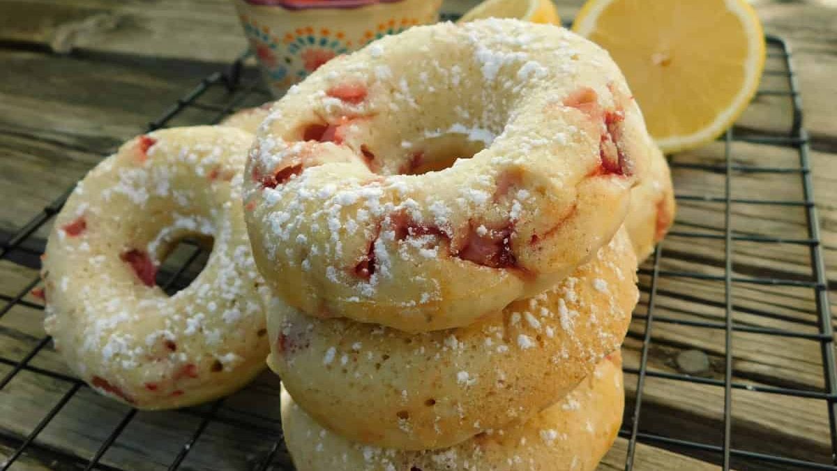 These strawberry donuts come together quickly and feel fun without requiring deep frying. Plus, the baked texture stays soft, which helps when serving a group. They work especially well for NYE party desserts since they can be made ahead and stacked easily. Add them to a dessert table for a bright pop of color.