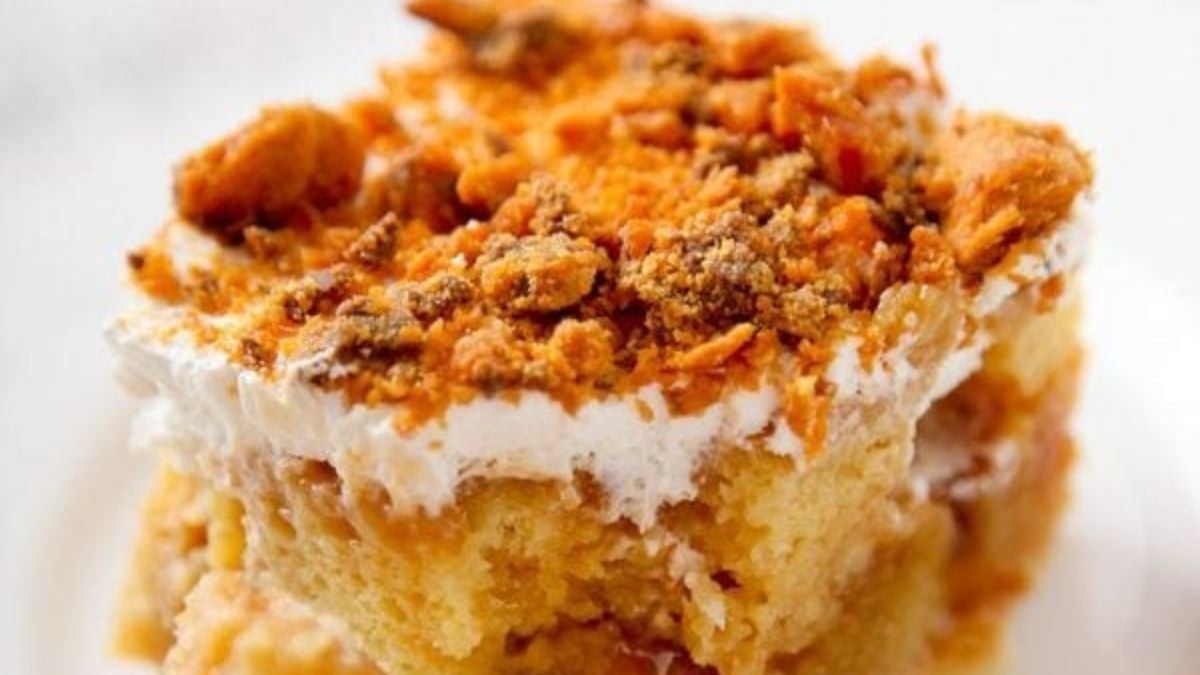 This Butterfinger Poke Cake starts with a soft yellow cake and gets drenched in caramel sauce before being topped with crushed candy bars. The combination of flavors feels indulgent but comes together in under 30 minutes. It’s great for potlucks or casual get-togethers. You’ll want to keep this recipe handy for when you need something quick and crowd-pleasing.