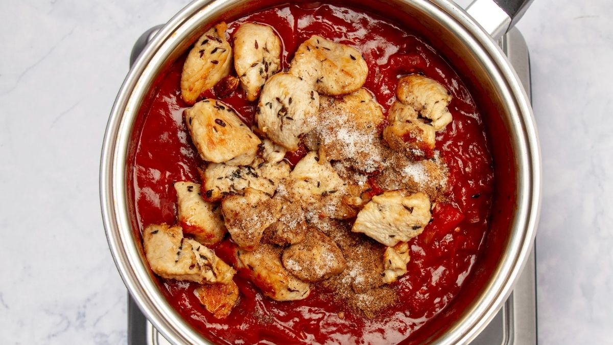 - Boneless, skinless chicken breasts – Lean chicken absorbs the spices well and stays tender when simmered gently.