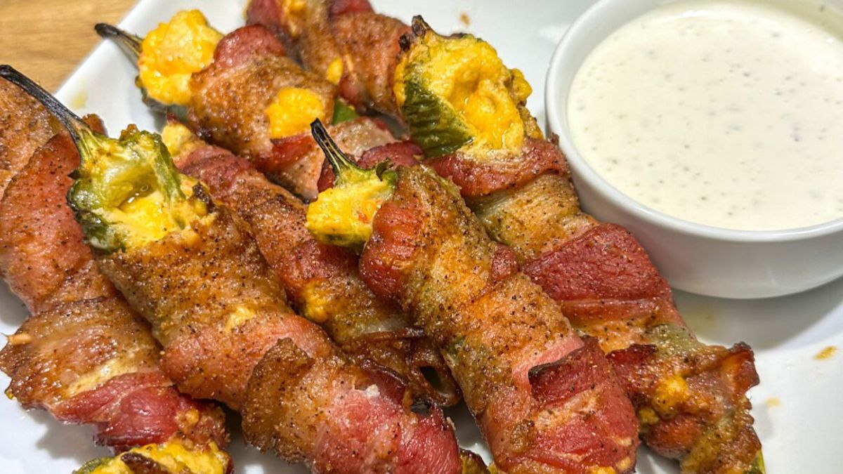 These poppers bring heat, crunch, and creaminess into one solid bite. The pimento cheese filling cools things down just enough, while the bacon crisps up nicely in the oven. Prep stays simple, which helps when feeding a crowd. They fit right in at parties or game day spreads.