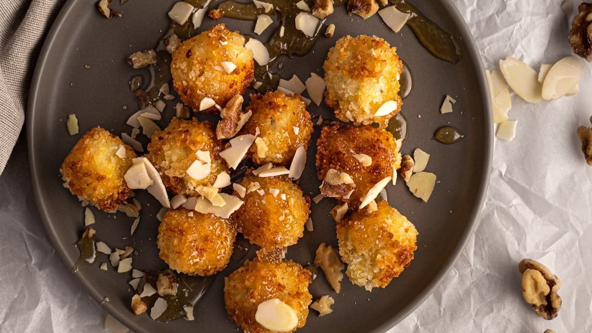 These croquettes fry up crisp on the outside while staying creamy in the center. Thyme adds a subtle herbal note that pairs well with the goat cheese. After frying, a light drizzle of honey and a sprinkle of nuts finish things off. They disappear quickly once they hit the table.