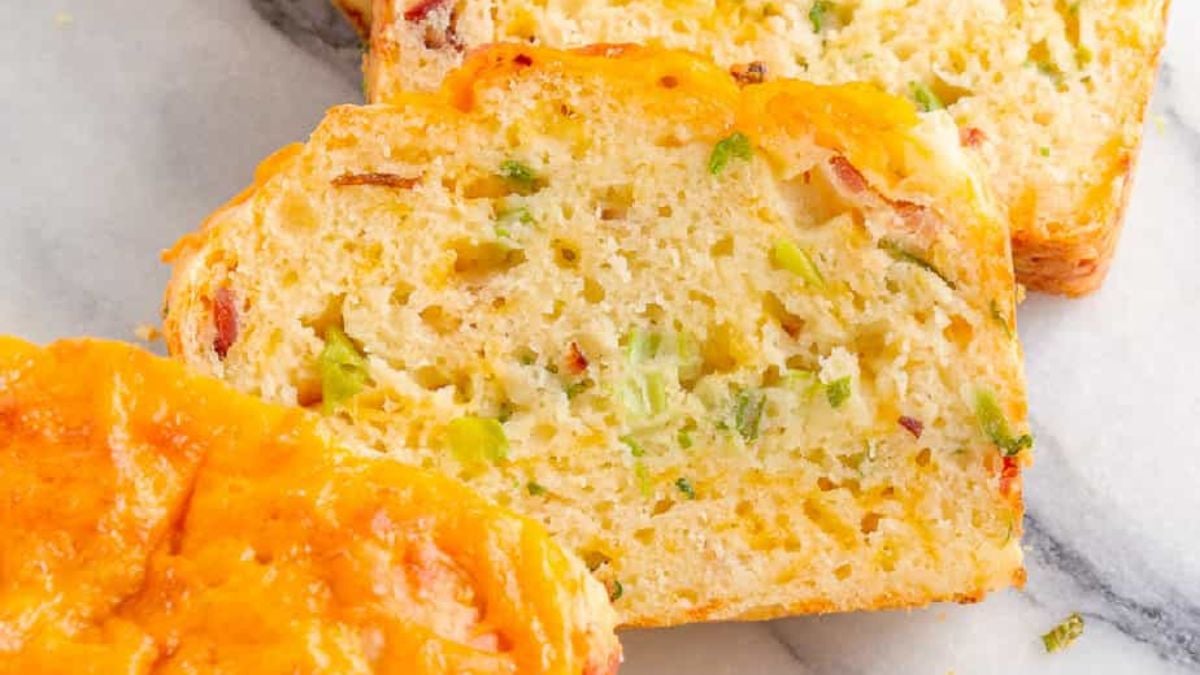 This bacon cheese bread pulls serious weight as a snack or a side. Crispy bacon and melted cheese show up in every bite, while green onions add just enough bite to keep things interesting. Meanwhile, the bread stays chewy and soft instead of dense.