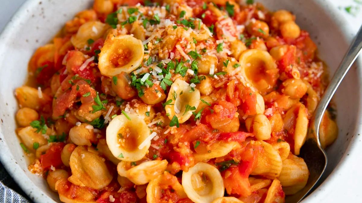 This pasta with chickpeas uses pantry staples without feeling boring. The chickpeas add texture while the sauce coats the pasta evenly. As it cooks, the flavors build without extra steps. Serve it with bread for an easy finish.