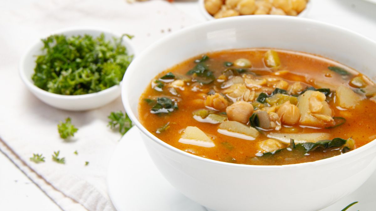 Spring minestrone focuses on fresh vegetables and a lighter broth. Instead of white beans, chickpeas add body without weighing it down. This soup fits right in with recipes with chickpeas that feel fresh and balanced.