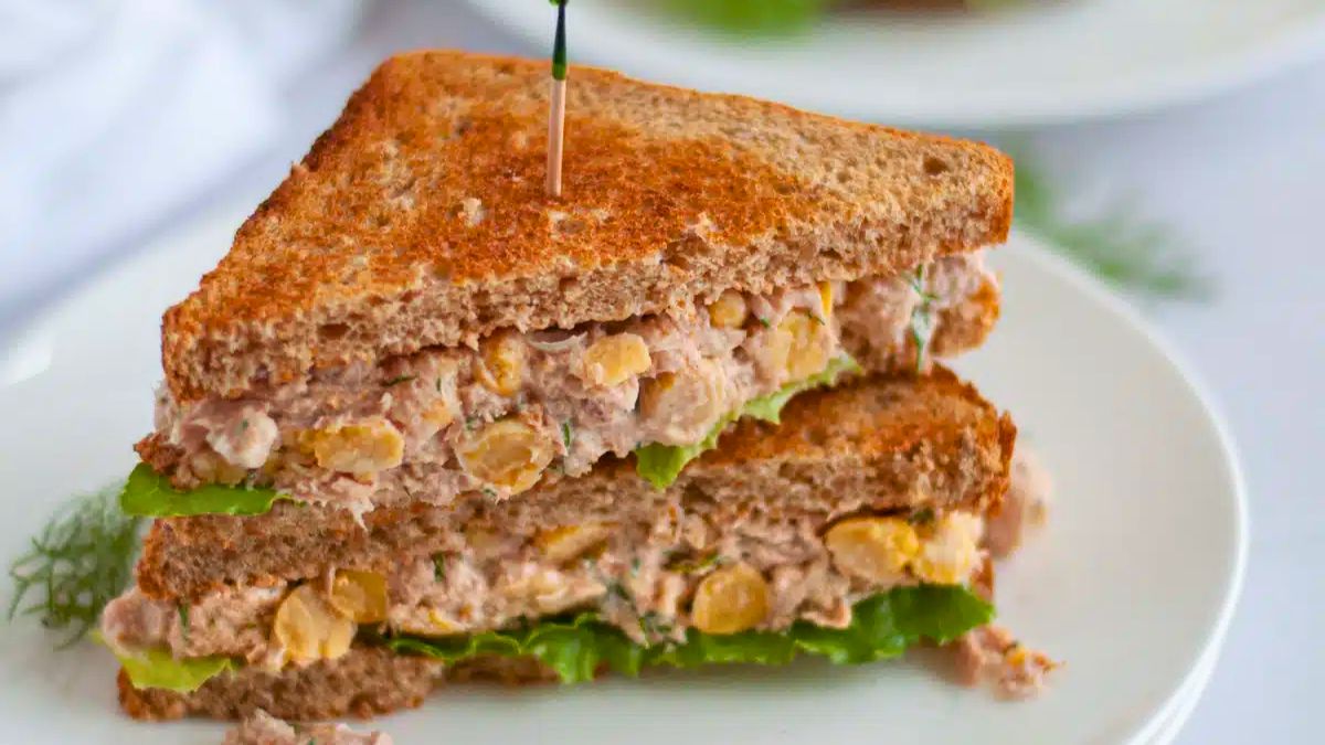 This tuna salad swaps mayo for Greek yogurt to keep things light. Chickpeas add texture while boosting protein. It spreads easily on bread or crackers.