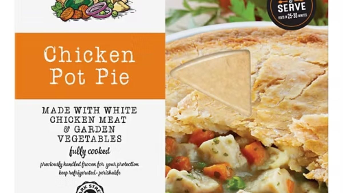 Skip the pricey comfort food and grab Aldi’s 30-oz. Park Street Deli chicken pot pie for $9.59, serving five. Tender chicken, peas, and carrots sit in a flaky crust that reviewers love. Many compare it favorably to other brand favorites. It’s filling, convenient, and perfect for family meals.