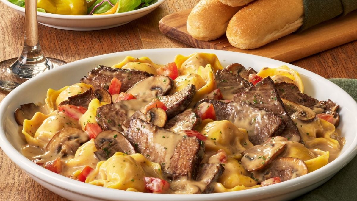 This dish features Asiago-filled tortelloni, tender braised beef, and roasted mushrooms, all tossed in a creamy marsala mushroom sauce. It’s rich, comforting, and exactly the indulgence fans were craving. The combination of cheese, beef, and earthy mushrooms makes it a standout menu item.
