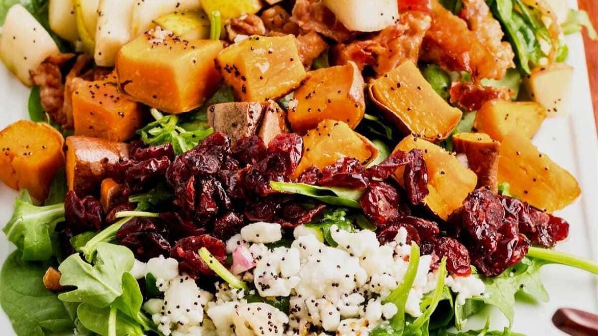 This harvest salad has everything that makes fall food fun, apples, sweet potatoes, bacon, and a tangy poppy seed vinaigrette. The mix of salty, sweet, and crunchy hits every craving at once. It looks impressive on the table but takes almost no effort to pull together. Perfect for any fall dinner or casual get-together.