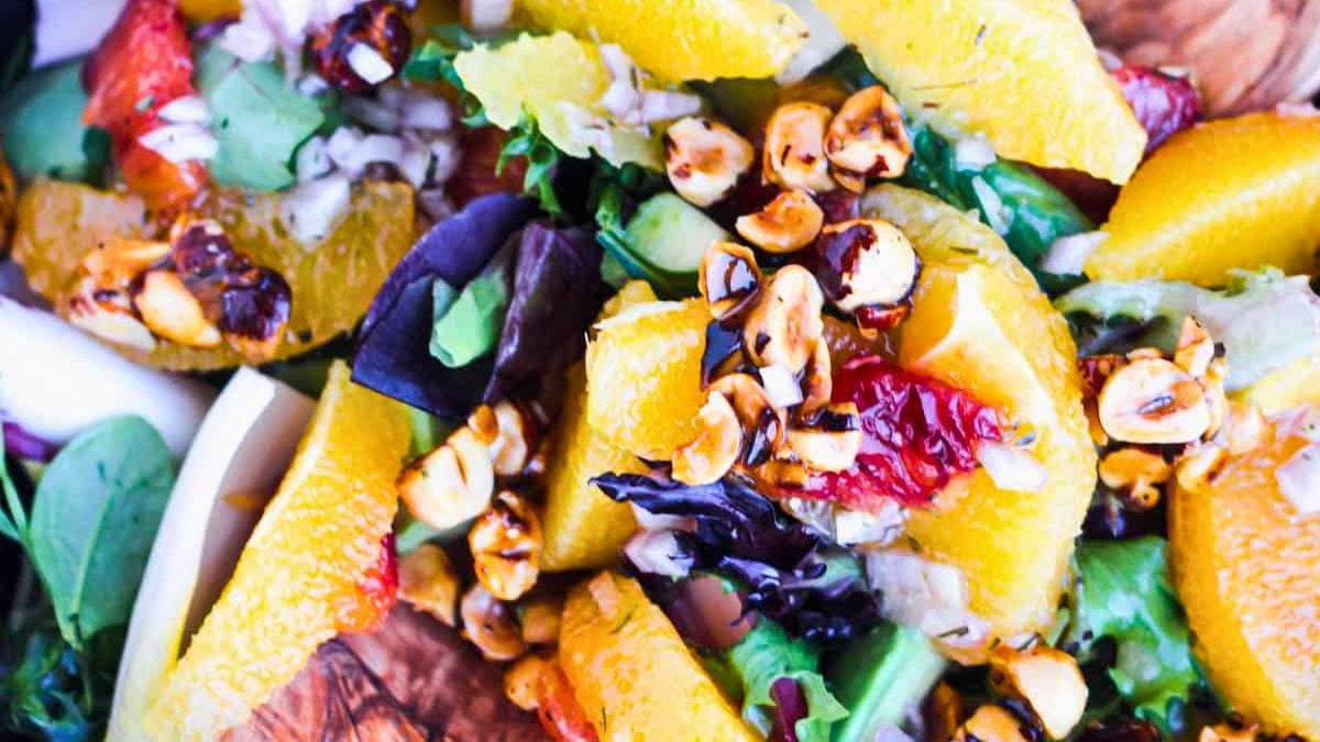 This orange salad keeps things simple but interesting with juicy slices, crisp greens, and honeyed hazelnuts. The mix of textures gives every bite a little something extra. It’s light, bright, and perfect when you want a break from the usual heavy holiday dishes. A little crunch and sweetness go a long way here.