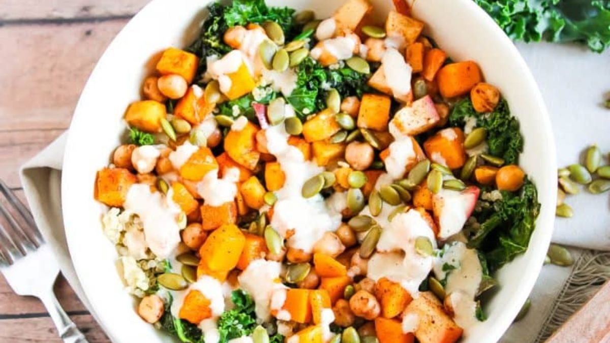 This fall harvest salad brings seasonal produce into one clean presentation. While roasted squash adds warmth, greens keep the dish balanced. Because the ingredients stay sturdy, leftovers hold up well. It works nicely for lunch or dinner plans.