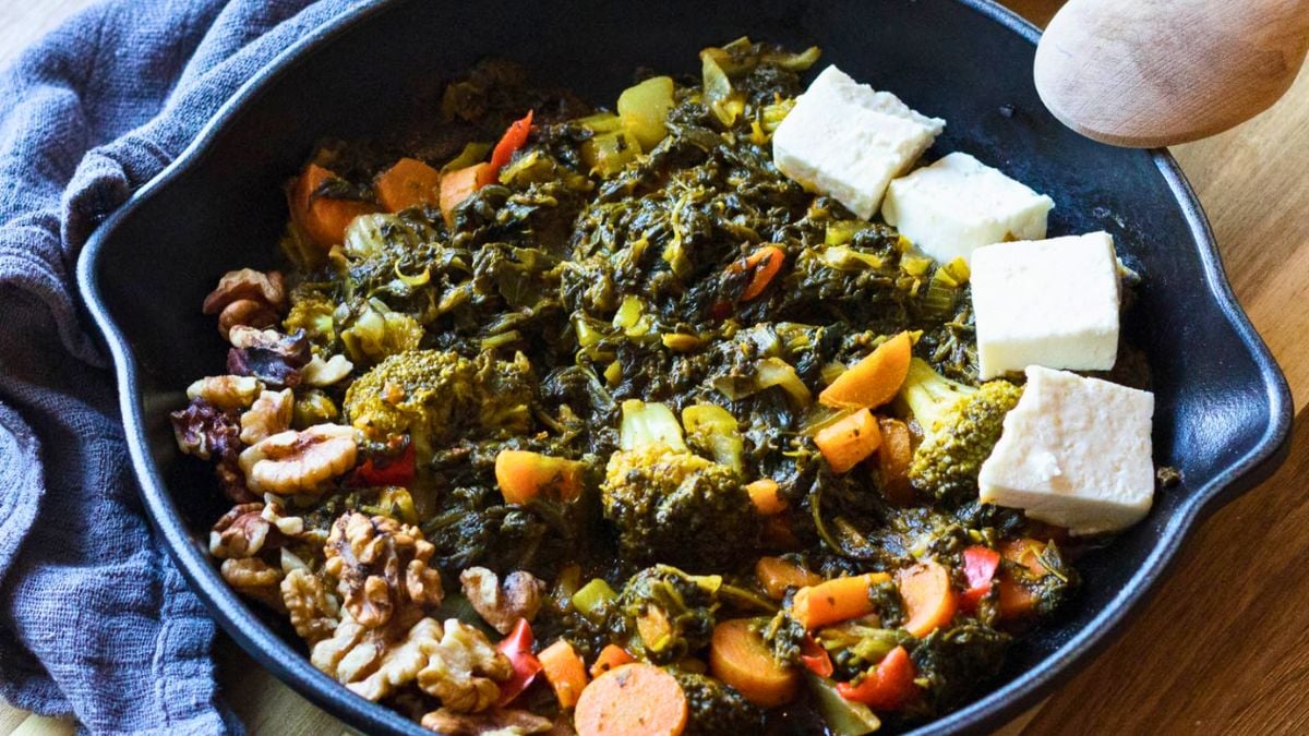 This skillet combines spinach, broccoli, and a few other veggies for a quick, healthy meal. While the greens cook, they soak up light seasoning for extra flavor. It’s simple, nutritious, and ready in minutes, perfect for a busy weeknight.