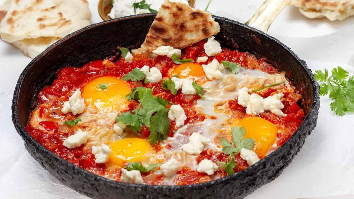 Shakshuka brings together eggs, tomatoes, peppers, and onions in one skillet. As everything simmers, the sauce thickens and holds the eggs in place. Therefore, serving stays simple and mess-free. It works well for stress-free one-pan dinners that feel filling without extra steps.