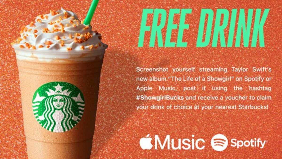 To mark the release of The Life of a Showgirl, Starbucks hosted what it calls the “largest global listening party” across its stores. The event wasn’t just about music—it was a full-blown fan experience, complete with glittery Swift-inspired drinks, friendship bracelets, and free beverages. The move positioned Starbucks not just as a coffee stop but as part of the pop culture moment dominating headlines.