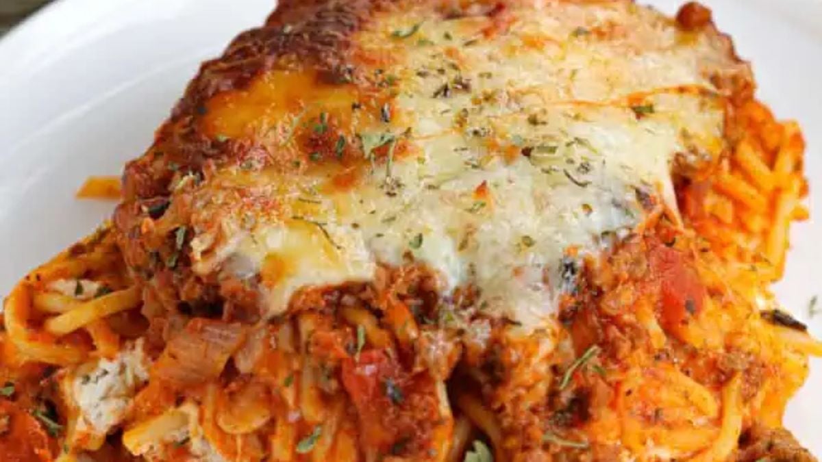 Baked Spaghetti Casserole, also known as Million Dollar Spaghetti Casserole, combines ground beef, spaghetti, and spaghetti sauce with a mixture of cream cheese, ricotta cheese, and sour cream baked into the center. Then this flavor-packed dish is topped with a blend of provolone and mozzarella cheese and baked to perfection.