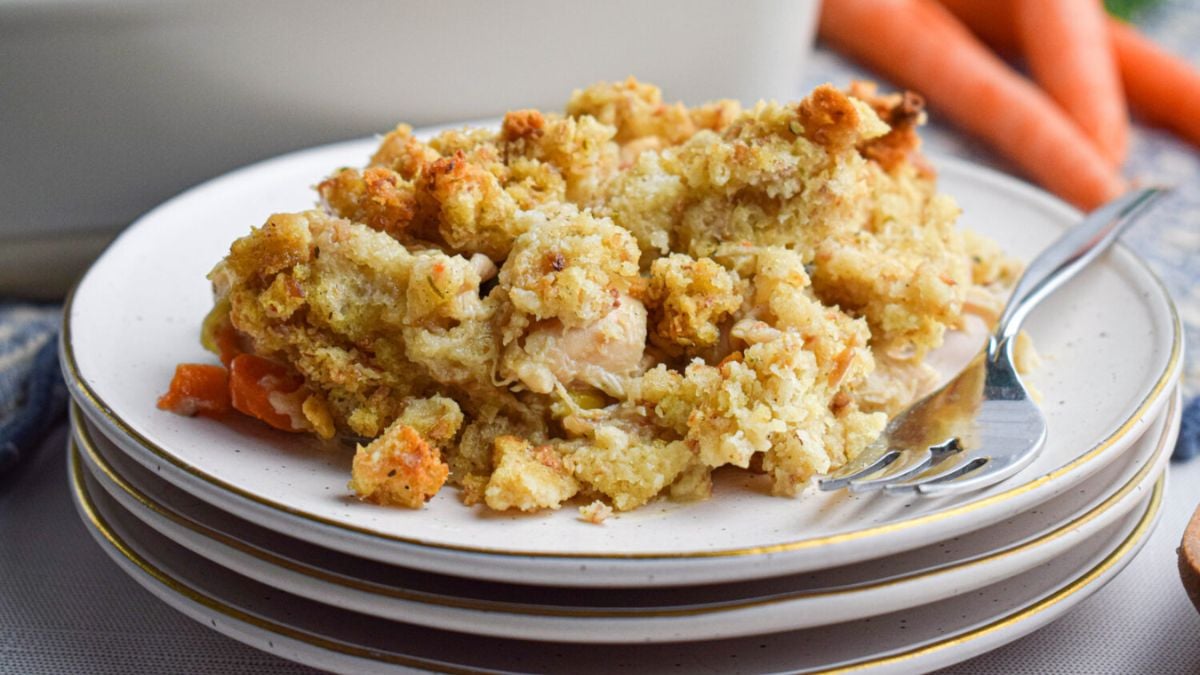 This chicken stuffing casserole combines fresh veggies, rotisserie chicken, and savory stuffing for a cozy, filling meal. It’s made without canned soup, keeping the flavors fresh and homemade. It works for casual family dinners or as part of a holiday spread. It’s hearty, comforting, and easy to prepare in one dish.