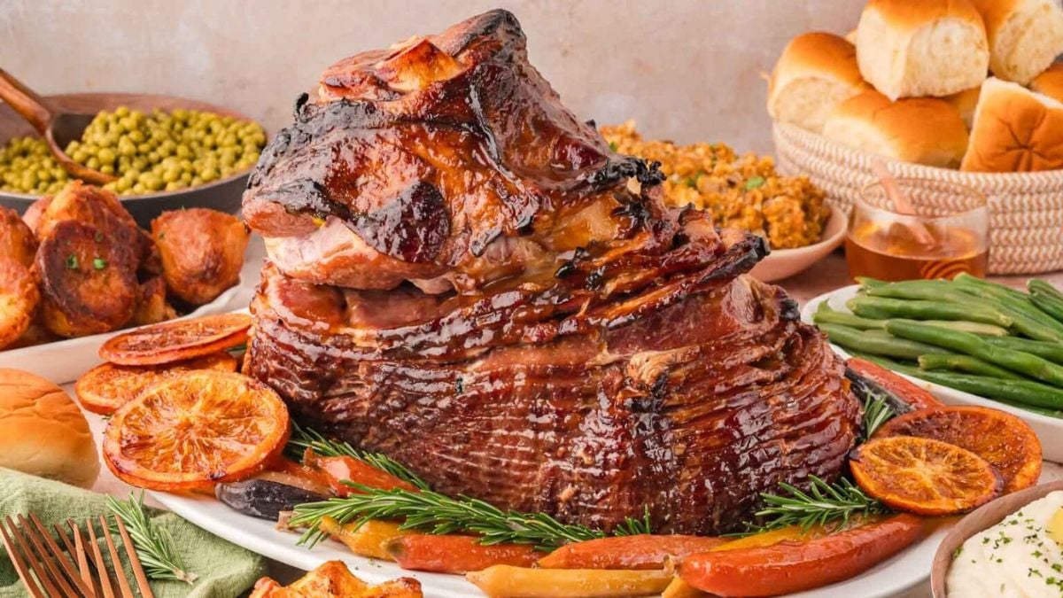 Glazed ham is sweet, tangy, and baked in two stages to ensure juiciness inside and caramelization outside. The glaze of orange marmalade, honey, and Dijon mustard complements the ham perfectly. Roasted carrots can go alongside for a complete one-pan dish. This recipe is ideal for holidays or thanksgiving dinner recipes with minimal effort.