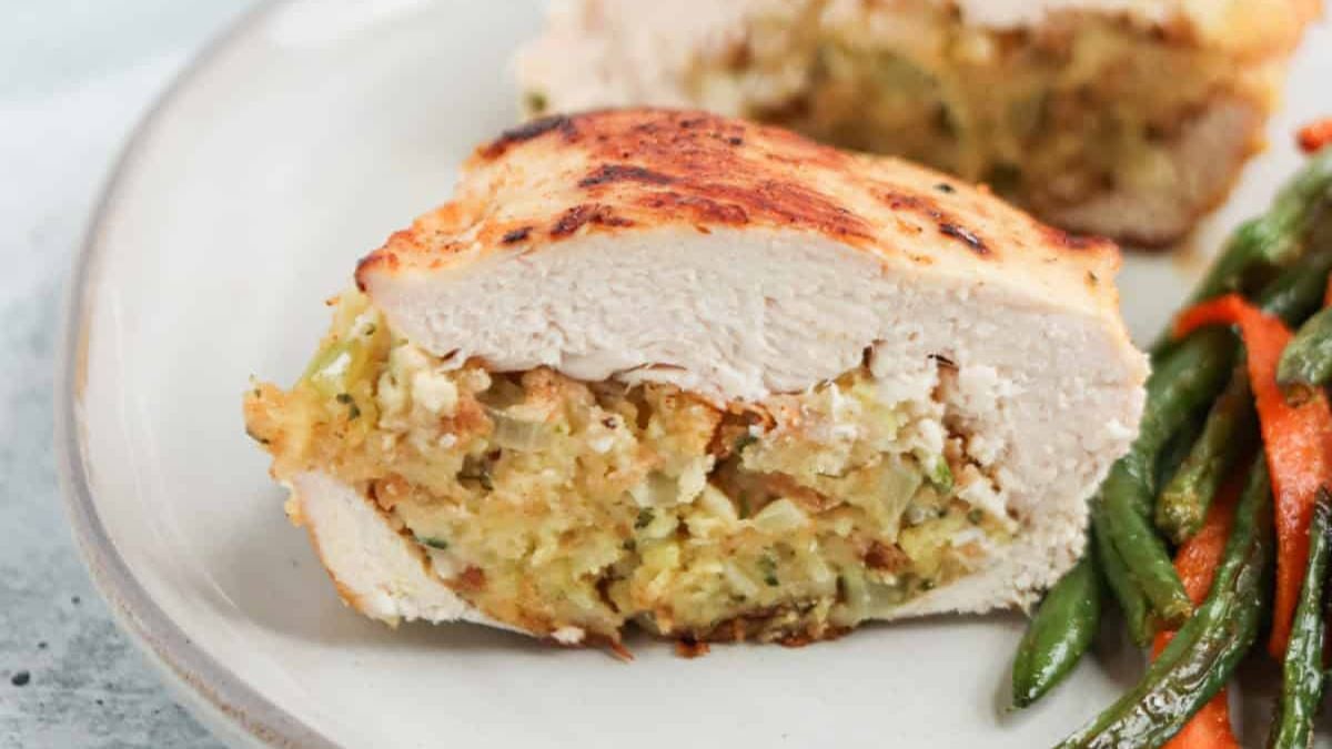 Stuffing-stuffed chicken breasts bring classic holiday flavors into a quick, manageable dish. It can be on the table in under 45 minutes, making it perfect for small Thanksgiving gatherings or weeknight dinners. Juicy chicken and flavorful stuffing pair seamlessly in every bite. This recipe is straightforward but feels special.