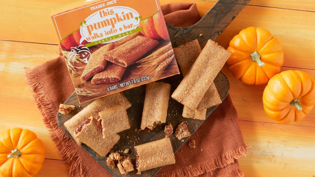 Quirky name, delicious snack. These cereal bars are filled with pumpkin puree and spiced just right, making them great for lunchboxes or a quick pick-me-up. Trader Joe’s fans wait for them every fall.