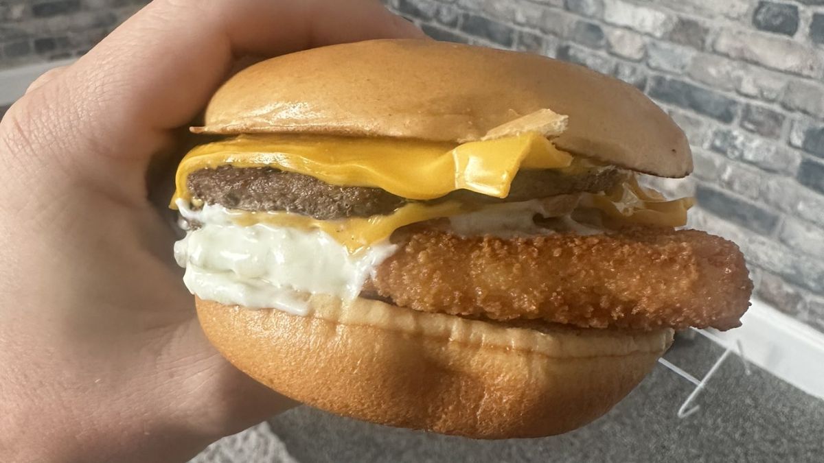 The Surf N’ Turf burger is designed for indecisive eaters. It combines two beef patties with a crispy fish fillet in one bun. Toppings include cheese, onions, pickles, mustard, and ketchup. The result is a mash-up of two McDonald’s classics in one bite.