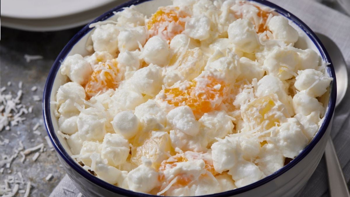 Ambrosia salad called itself a salad, but dessert lovers knew better. It mixed canned fruit with coconut, marshmallows, and marshmallow fluff into one sweet bowl. Popular in Southern households, it showed up at nearly every holiday. Over time, tastes shifted toward fresher fruit dishes. Still, it’s pure nostalgia for those who grew up with it.