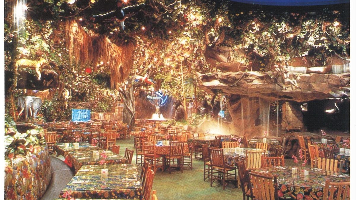 Rainforest Café was basically a family-friendly theme park disguised as a restaurant. Animatronic animals moved around you, vines hung from every corner, and a timed thunderstorm shook the room every 20 minutes. Diners didn’t show up for culinary innovation — the atmosphere was the point. It was chaotic, loud, and unforgettable in the most dramatic way.