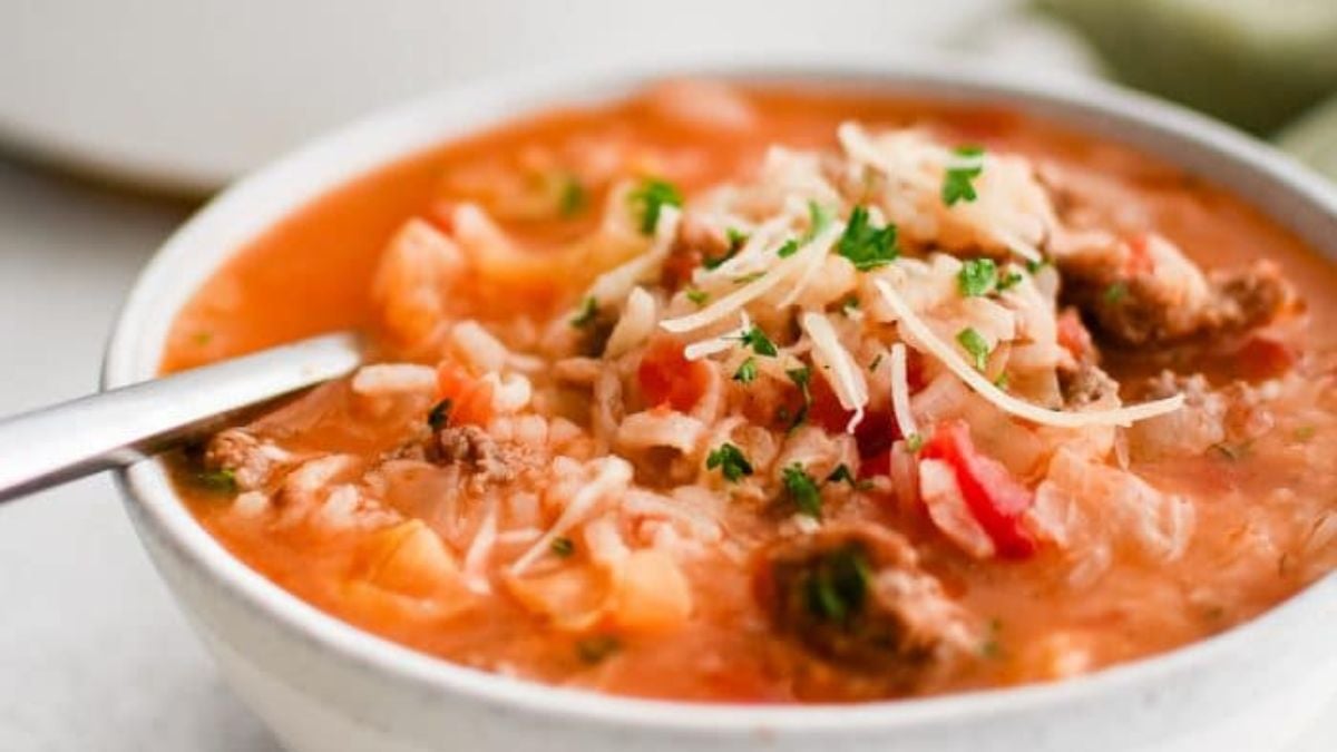 This stuffed pepper soup brings together beef, tomatoes, and peppers in one pot. Slow cooking allows the vegetables to soften and blend into the broth. Meanwhile, the flavors stay consistent from first bowl to last. It works well for fall and winter meal planning.